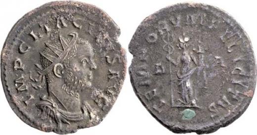 AE Antoninianus, Rv:"TEMPORVM.FELICITAS.", stojící Felicitas, S.3214, RIC.65 - mincovna Řím - blíže nedatován, nepravidelný okraj střížku, skvrnka, pat.