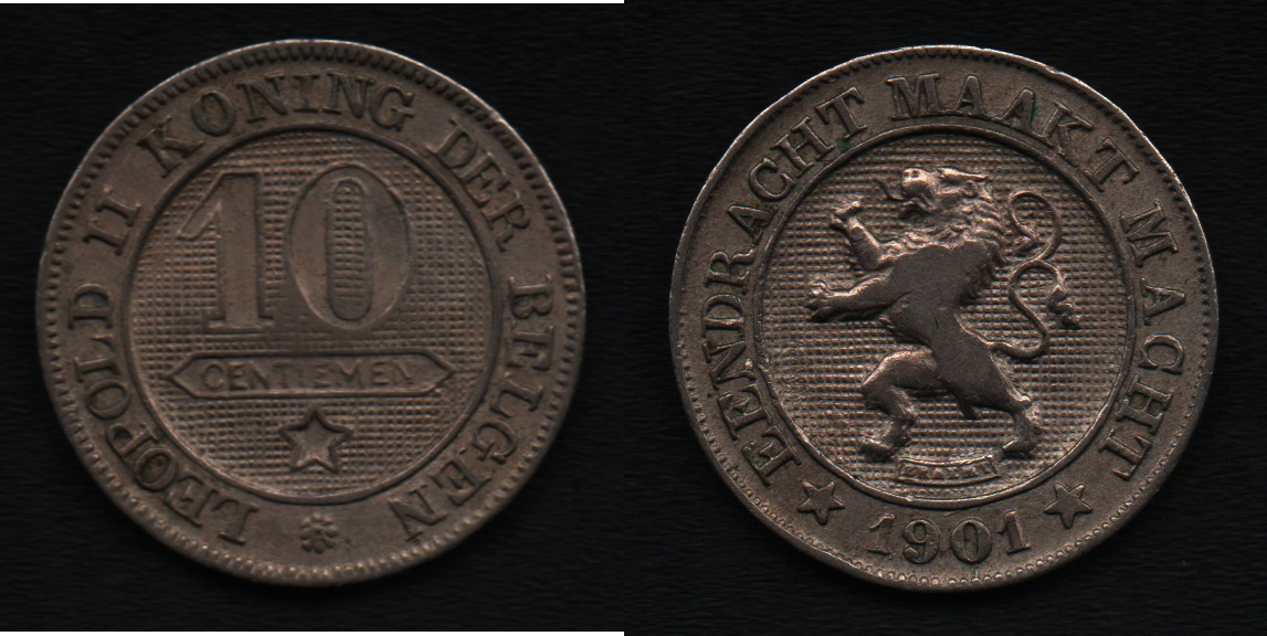 10 Centimes 1901 - DER BELGEN, KM.43, 4.550g, nep.hr., pěkná patina R!