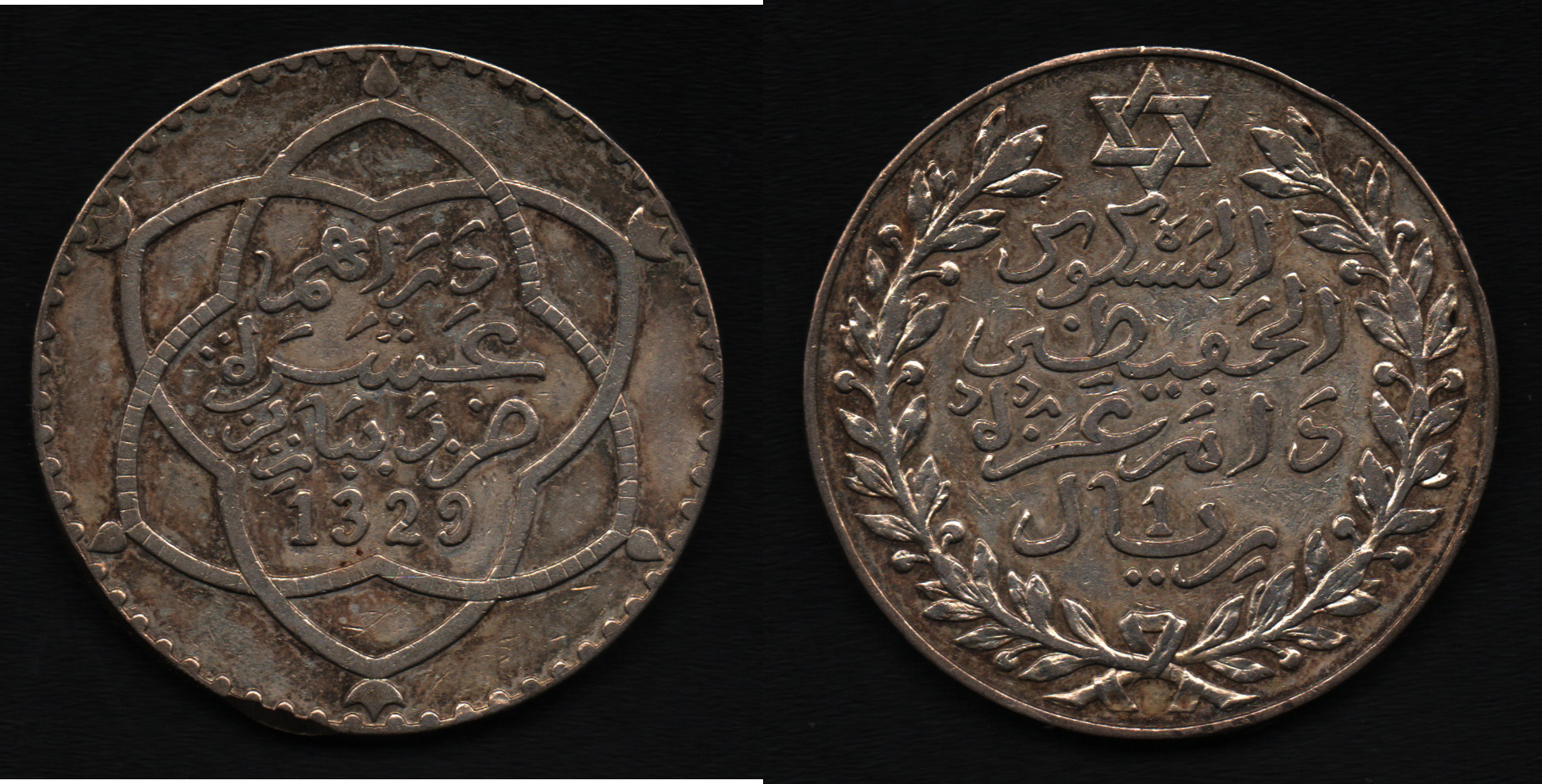 1 Rial = 10 Dirhams, AH.1329 (= 1911), Y.25, 24.772g, nep.hr., nep.rysky, patina