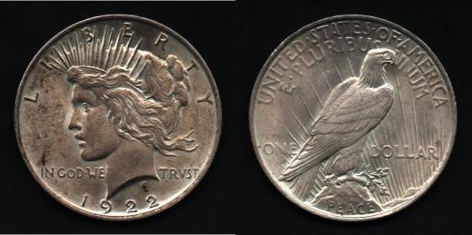 Dolar 1922 - Mírový, KM.150, 26.792g, dr.hr., dr.rysky, patina