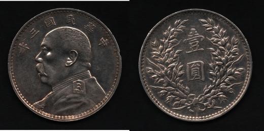 Dolar, rok 3 (= 1914), generál Yuan Š-kchai, Y.329, 26.905g, dr.hr., dr.rysky, pěkná patina