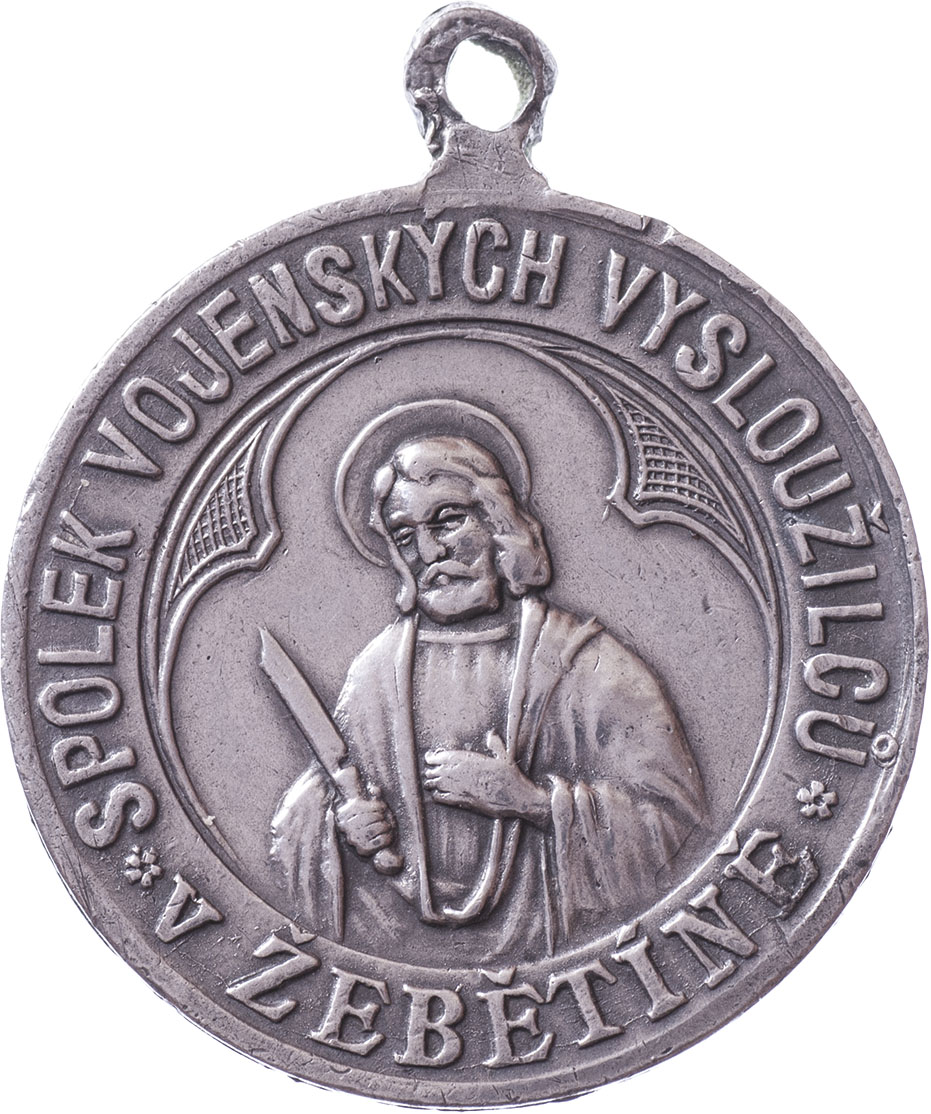 Žebětín 1901 - protektor tesařský mistr Karel Šipka - svěcení praporu 29.6., Nesign. cín 29 mm s původním raženým ouškem, Indra.str.51, hr., dr.rysky