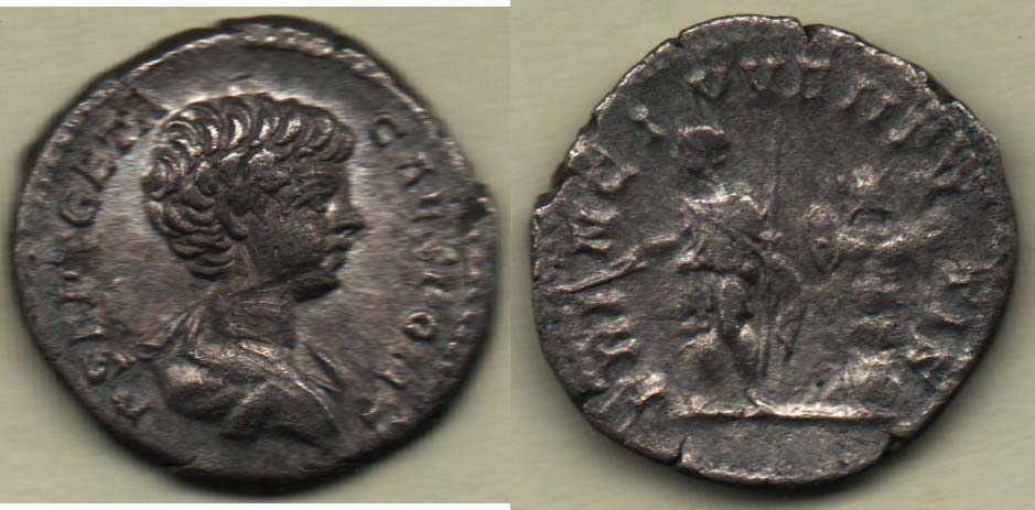 AR Denár, Rv:"PRINC.IVVENTVTIS.", césar a trofeje, S.1918, RIC.18 - mincov. Řím - ražba z let 200 - 202, dr.vady materiálu, nedor., pěkná patina
