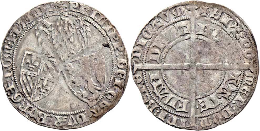 Dvougroš b.l., orel sedící na dvou znacích, opis / velký kříž, dva opisy, De Wit.1328, FW.II.11498-pod., 3.908g, kraj.střížek, nep.nedor., pěkná patina R!