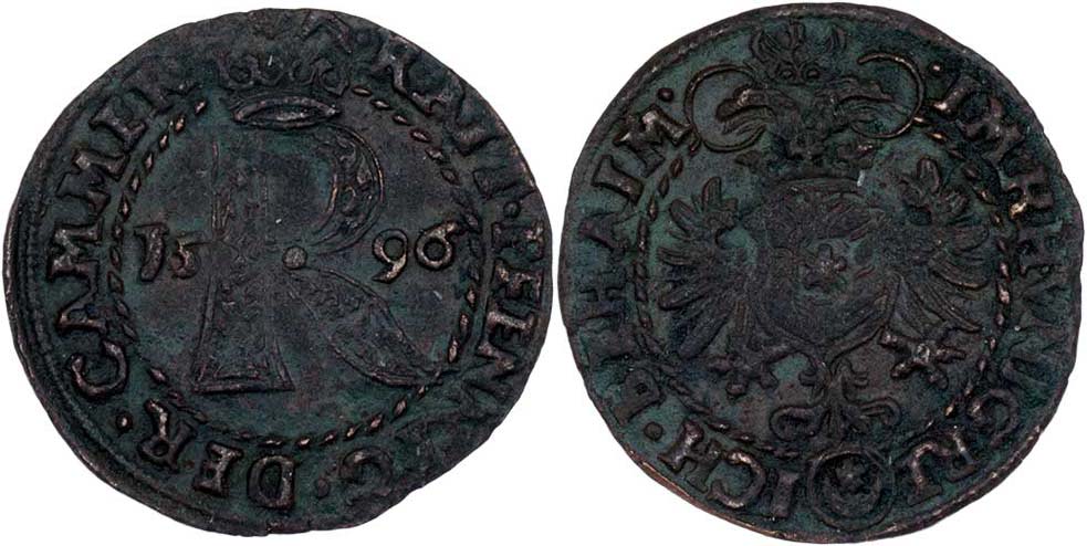 Početní peníz 1596, Jáchymov-Hoffmann, Pro.73, J.55a, podobný jako ČS.233, 2.353g, nep.nedor., pěkná patina
