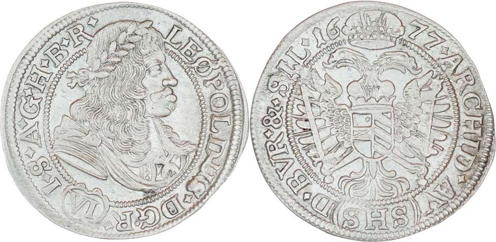 VI Krejcar 1677, Vratislav-Hammerschmidt, MKČ.1606, Nech.703, 3.128g, nep.nedor., nep.vady razidla, téměř
