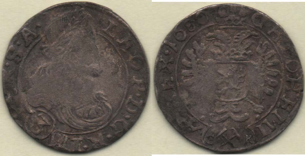 3 Krejcar 1680, K.Hora-Krahe, Nech.296, MKČ.1454, 1.832g, nedor., zvlněný, tmavá patina