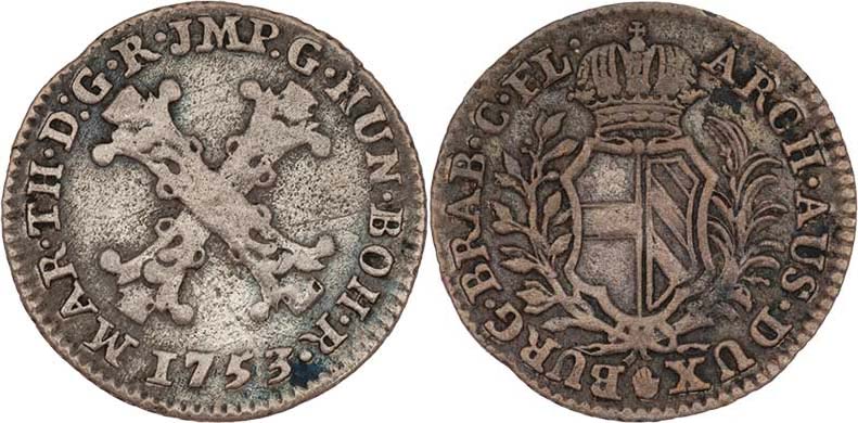 10 Liard 1753, Antverpy, N.165, 2.041g, patina RR!