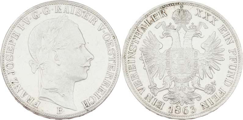 Tolar spolkový 1863 B, 18.519g, mírně just., nep.hr., dr.rysky, téměř