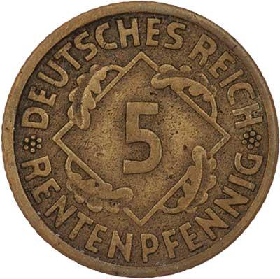 5 Rentenpfennig 1923 F, KM.32, 2.423g, dr.rysky, pěkná patina RR!