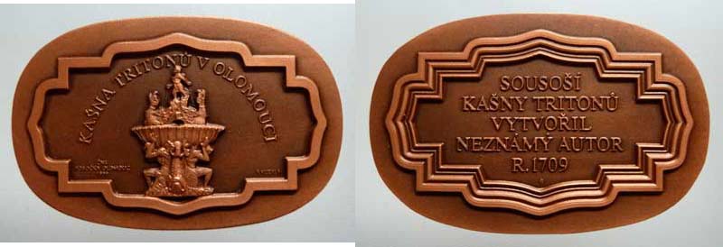 Kudela - Kašna tritónů 1999 - sousoší a půdorys kašny, opis a nápis/ 6-řádkový nápis a půdorys kašny, pat.měď, 70/45mm, nápis na hraně, FM.33Aa (20ks) RR!