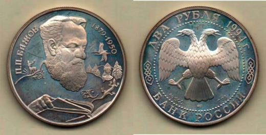 2 Rubl 1994 - Pavel Bažov, Y.342 (Ag500, 15.87g, 250.000 ks), patina