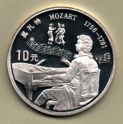 10 Yuan 1991 - Mozart u klavíru, Y.347 (pouze 25.000 ks), kapsle
