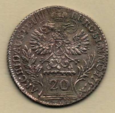 20 Krejcar 1757, Praha-Erdmann, N.30, MKČ.1950, 6.585g, dr.vady mater., mírně just., patina
