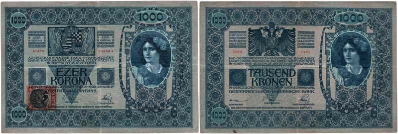 1000 Koruna 1902 - kolkovaná, série 1231, BHK.6