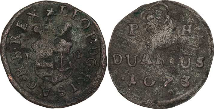 Duarius (1/2 Krejcar) 1073 KB - chyboražba roku 1703, Nech.1255, Husz.1500a, 0.464g, nedor., patina RR!