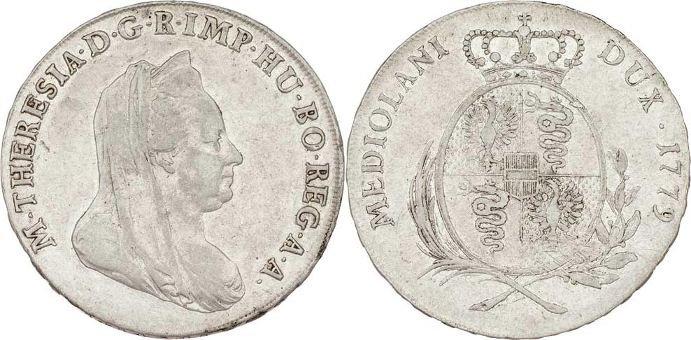 Scudo 1779, Milán, N.199, Cr.36, Dav.1386, 23.036g, nep.nedor., mírně just., pěkná patina R!
