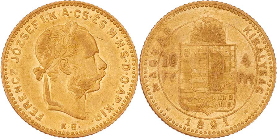 4 Zlatník 1891 KB - se znakem Rijeky (pouze 32.000 ks), 3.198g, nep.hr., nep.rysky, pěkná patina R!