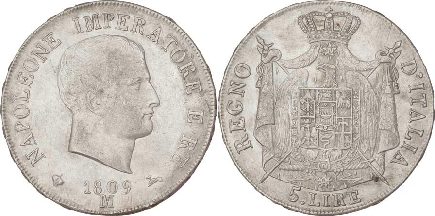 5 Lira 1809 M, Milano, Cr.10.1 (pouze 2.480 ks), 24.757g, nep.vada razidla, mírně just., patina RR!
