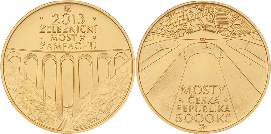 5000 Koruna (1/2 Unce) 2013 - Železniční most v Žampachu (Au999, 9.700ks), 15.596g, kapsle, etue, karta