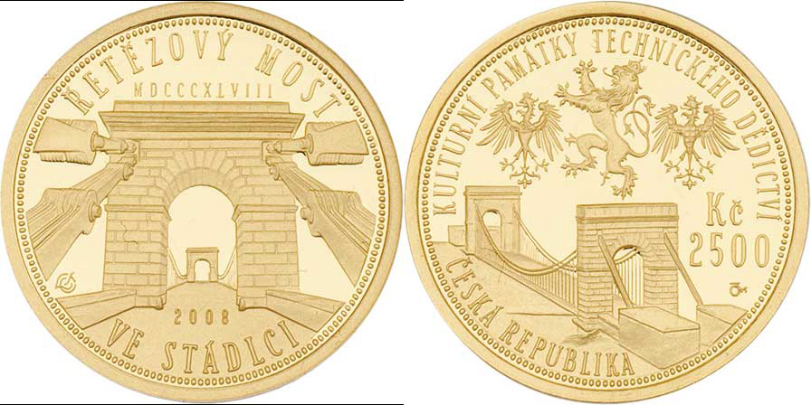 2500 Koruna (1/4 Unce) 2008 - Řetěz.most ve Stádlci, KM.103 (Au999, 7.78g, 10.900 ks), kapsle, etue, karta