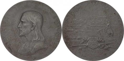 Vídeňská salvatorská medaile 1917 - Kristus Spasitel zleva, opis / pohled na město, znak s mečem, opis a nápis, Sign.JT, železo 45mm, krásná patina R!