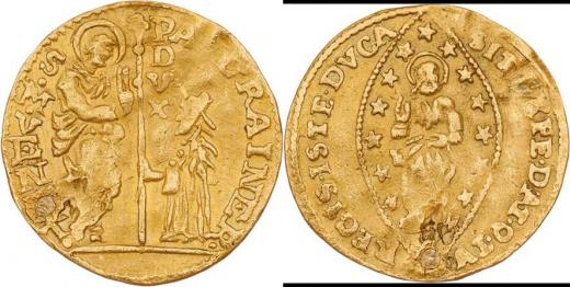 Zecchino b.l., Cr.107, Fr.1434, 3.161g, okráj., nedor., zvlněný, zaletovaná dírka, drobné úhozy