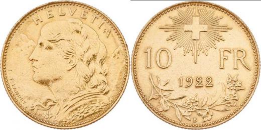 10 Frank 1922 B, KM.36, 3.211g, dr.hr., dr.škr., rysky