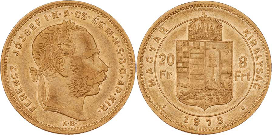 8 Zlatník 1878 KB, 6.412g, nep.hr., nep.rysky, pěkná patina