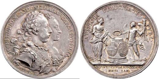 Widemann - AR medaile na svatbu ve Vídni 23.1.1765 - dvojportrét zprava, opis / Austria a Hymen u oltáře, písmo, Sign., Ag 40mm, 26.142g, M.1938, H.3136, téměř