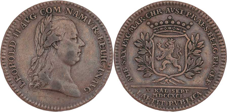 Berckel - AE větší jeton na holdování v Namuru 1791 - Poprsí zprava, opis / korunov. znak ve věnci, písmo, 33mm, 12.674g, Nov.M.1c, M.2234, H.3261, dr.hr., pat.