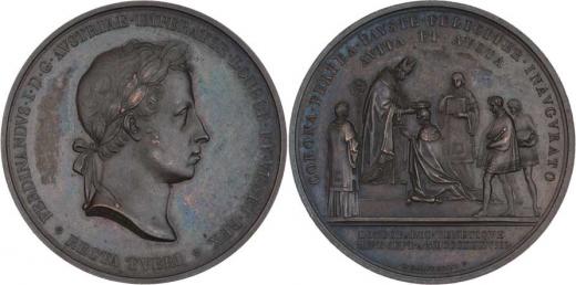 Manfredini - AE medaile na korunovaci v Miláně 1838 - hlava zprava, opis / korunovační obřad, opis a nápis, Sign., 52mm, Nov.G.1c, P.6/3, M.2578, patina, téměř