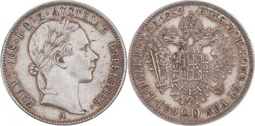 20 Krejcar 1852 A - hlava zprava, 4.300g, nep.hr., vlas.rysky, pěkná patina, téměř