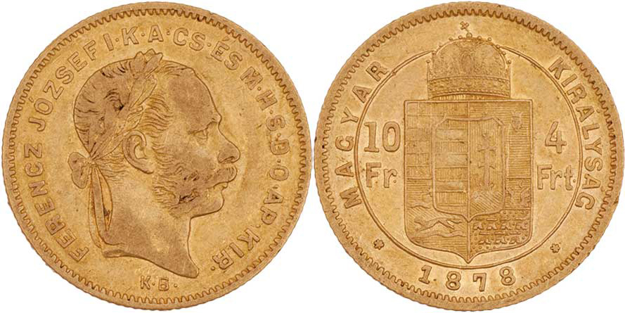 4 Zlatník 1878 KB (pouze 15.000 ks), 3.182g, nep.hr., nep.rysky, pěkná patina R!