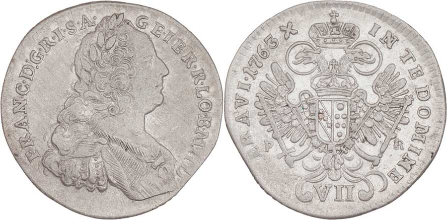 VII Krejcar 1763 PR, Praha-Erdmann, N.12, MKČ.1998, 3.158g, krajový střížek, nedor., nep.hr., dr.rysky