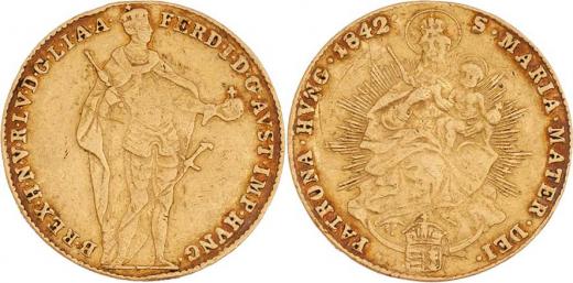 Dukát 1842 - s madonou, Kremnica, 3.451g, stopa po oušku, mírně zvlněný, dr.hr., dr.rysky, pěkná patina