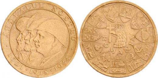 20 Lei 1944 (bez označení nominálu), Fr.21, KM.M6 (Au900), 6.563g, nep.hr., nep.rysky, pěkná patina