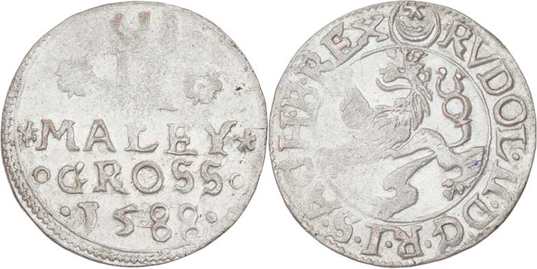 Malý groš 1588, Jáchymov-Hoffmann, HN.8a (opis 7c), nápis "* MALEY */o GROSS o/. 1588 .", 1.166g, nedor.