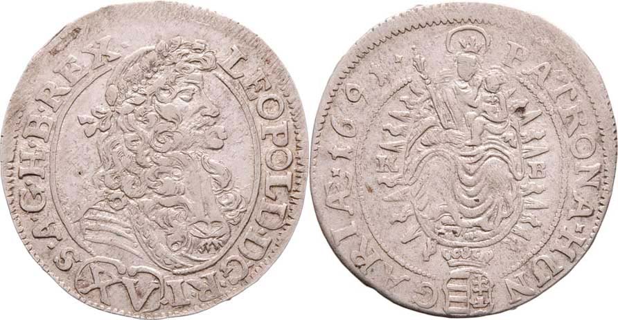 XV Krejcar 1691 KB, Nech.1178, Husz.1428, 6.102g, mírně exc., mírně just., pěkná patina