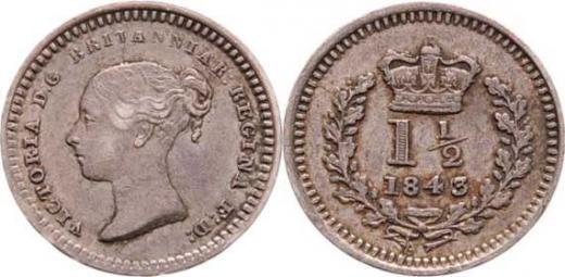 1.5 Pence 1843, KM.728 (Ag925), 0.704g, nep.hr., nep.rysky, pěkná patina
