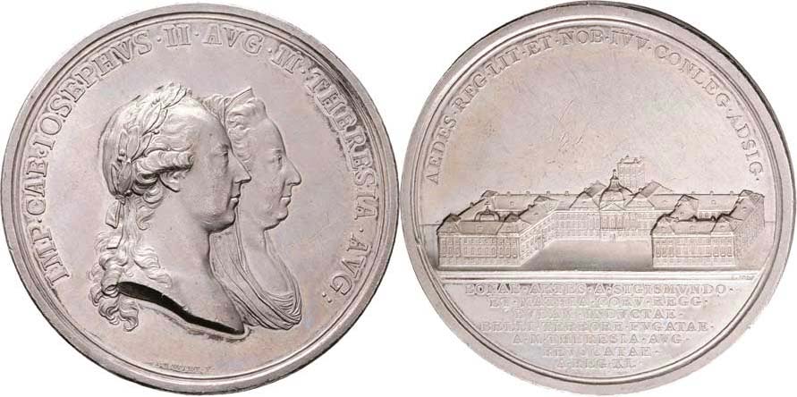 Wirt - přenesení university z Trnavy do Budy 1780 - dvojportrét zprava, opis / universitní budovy, opis a nápis, Sign., Ag 50mm, 43.882g, M.2097, H.2987, rysky