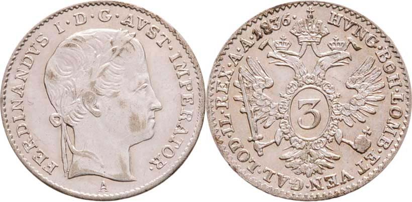 3 Krejcar 1836 A - FERDINANDUS, 1.645g, nep.vada razidla, patina, téměř R!