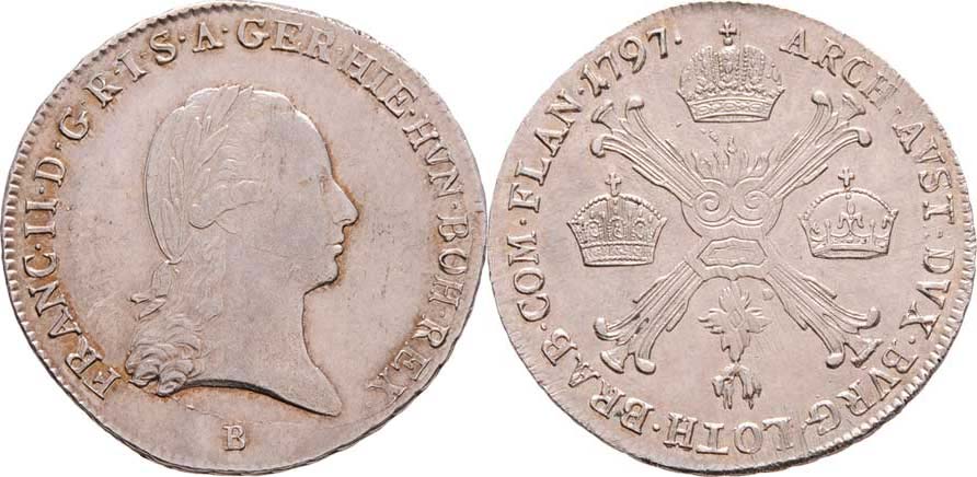 1/4 Tolar křížový 1797 B, Kremnica, 7.394g, vlasové vady razidla, mírně just., nep.hr., nep.rysky, patina