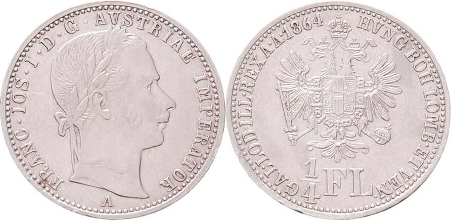 1/4 Zlatník 1864 A, 5.299g, nep.hr., nep.rysky, pěkná patina