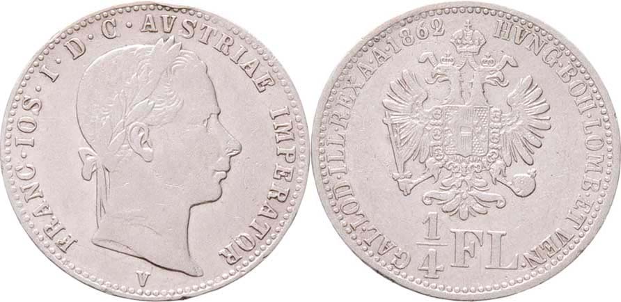 1/4 Zlatník 1862 V, 5.331g, hrana, vl.rysky, patina RR!