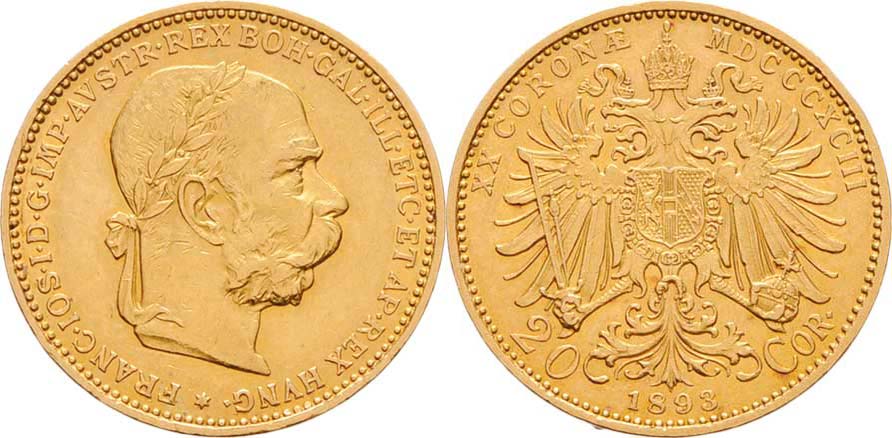20 Koruna 1893, 6.763g, nep.hr., nep.rysky, pěkná patina