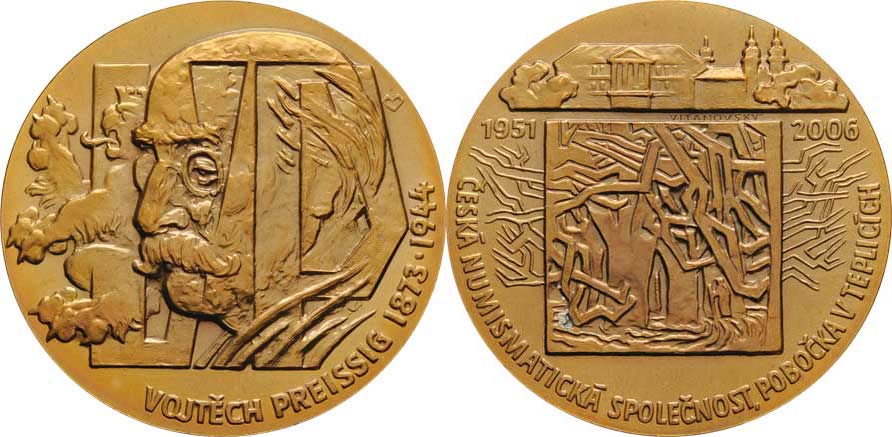 Vitanovský - Vojtěch Preissig - 55 let pobočky 2006 - hlava zleva, český lev, písmo / město, stromy, písmo, Sign., leský bronz 40 mm (údajně pouze 3 ks) RRR!