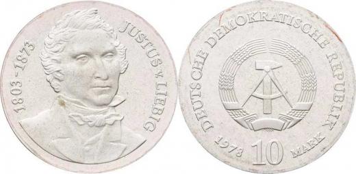 10 Marka 1978 - Justus von Liebig, KM.69 (Ag500, 17.00g, 4.500 ks), vlas.škr., patina, kartička RR!