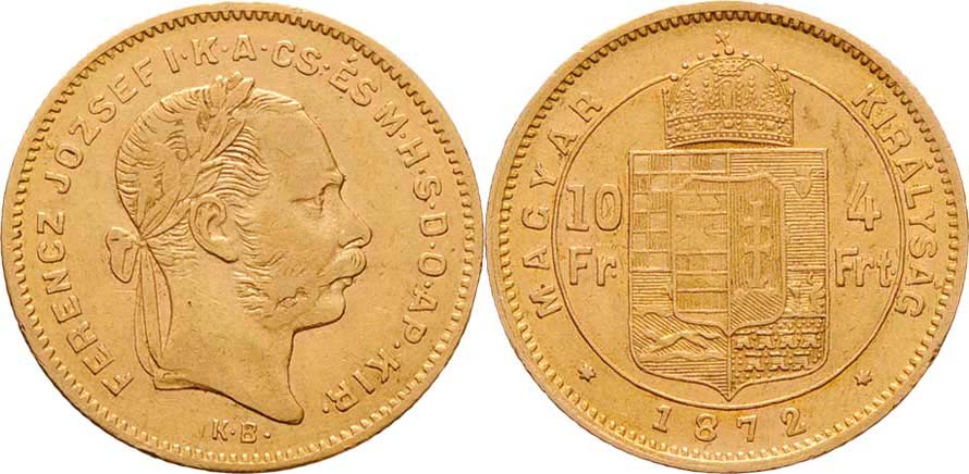 4 Zlatník 1872 KB (pouze 53.000 ks), 3.197g, dr.hr., nep.rysky, pěkná patina R!