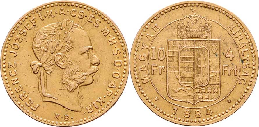 4 Zlatník 1884 KB (pouze 54.000 ks), 3.209g, nep.hr., dr.rysky, pěkná patina R!